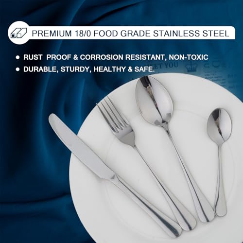 【Healthy and Safe】The silverware tableware set is made of premium rust resistance 18/0 stainless steel, making it an ideal choice for a variety of cooking tasks. We have strictly QC systems to ensure premium quality,Non toxic, nickel free and no metal taste, Healthy and durable, easy to clean and can be dishwasher safe.