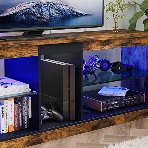 Bestier TV Stand Cabinet 140CM Entertainment Center Led Tv Stand Modern TV Unit with Glass Shelf RGB LED Lighted for 65 inch TVs with Ambient Lights for Living Room Bedroom (Rustic Brown)