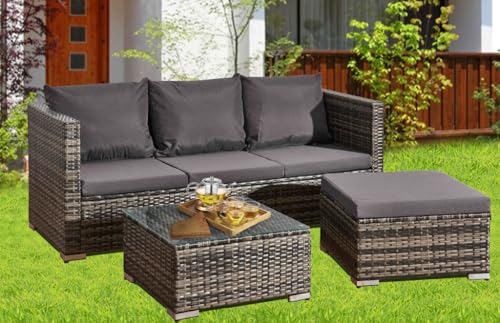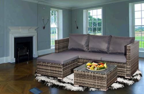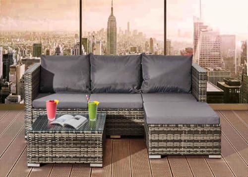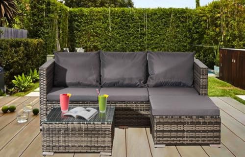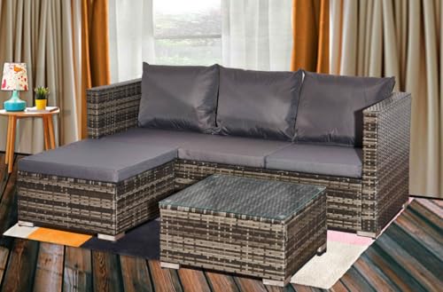 Specification: COSMO BUY 4-Seater L-Shape Mix Grey Rattan Corner Sofa Set 3 Piece Indoor/Outdoor Home Rattan Garden Furniture Sets Patio Wicker Backyard Conservatory Sofa With Glass Top Coffee Table & Cushions