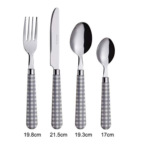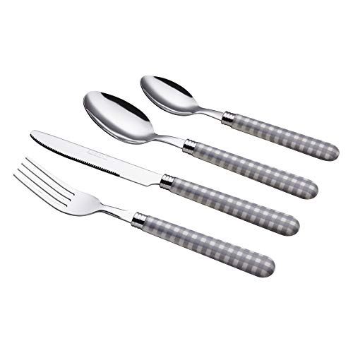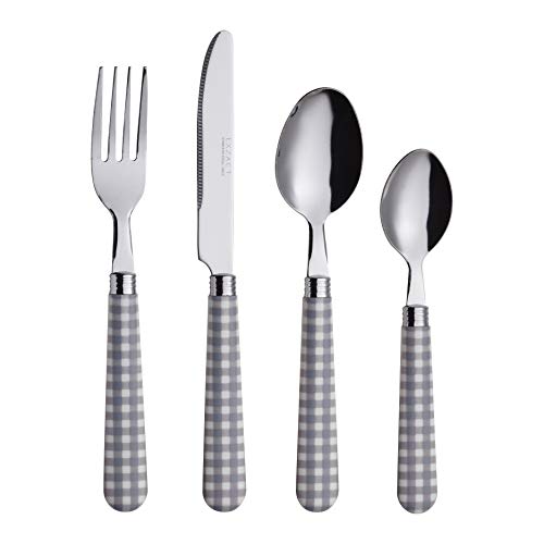 Specification: EXZACT Cutlery Set of 24, Stainless Steel with Gingham Check Coloured Handles – 6 x Forks, 6 x Dinner Knives, 6 x Table Spoons, 6 x Tea Spoons(Grey x 24)