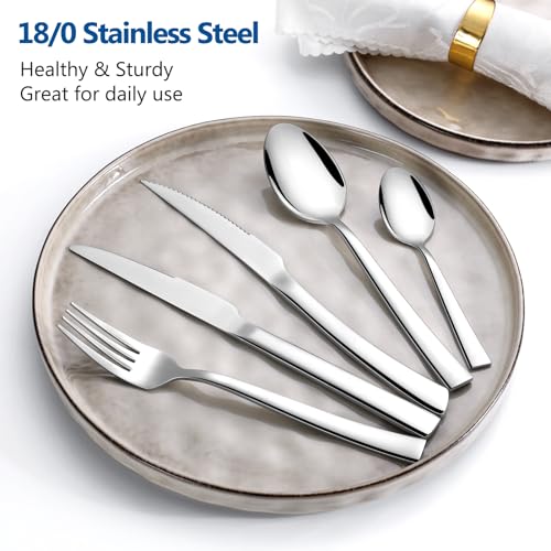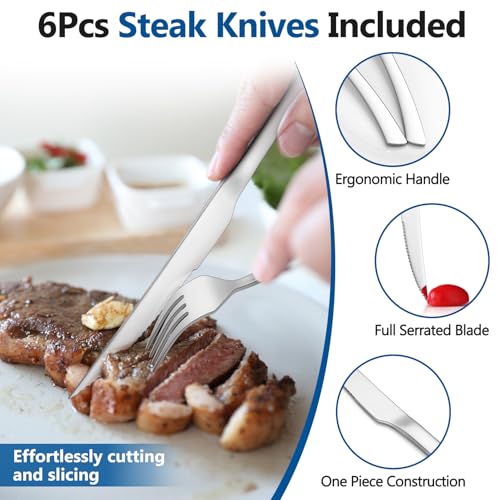 Homikit Cutlery Sets with Steak Knives, 30 Pieces Stainless Steel Flatware Set for 6 People, Included Knives Forks Spoons for Camping Kitchen Party, Non-Toxic, Mirror Polished & Dishwasher Safe